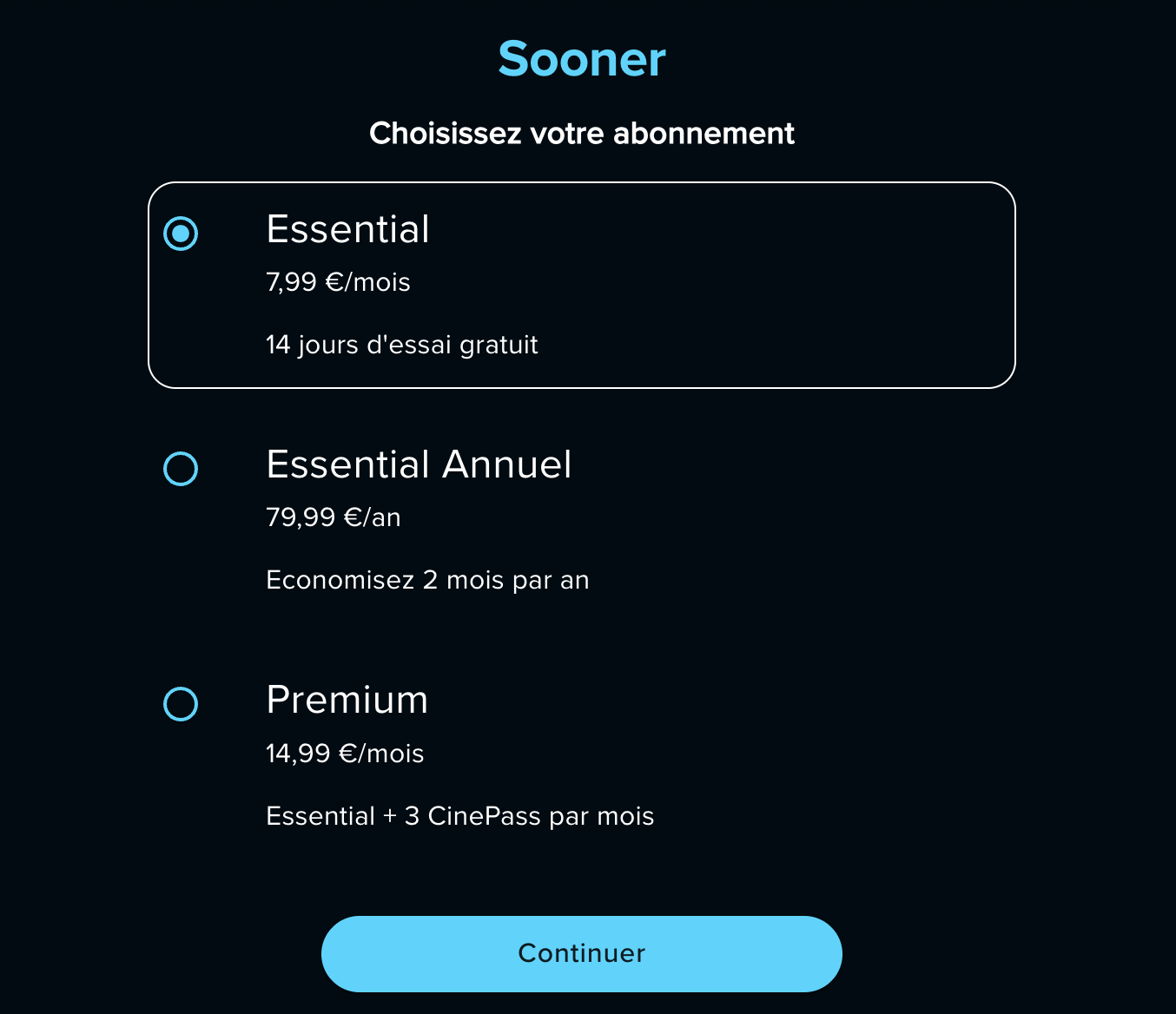 Sélectionnez le produit correspondant à l'offre et cliquez sur "Continuer".
