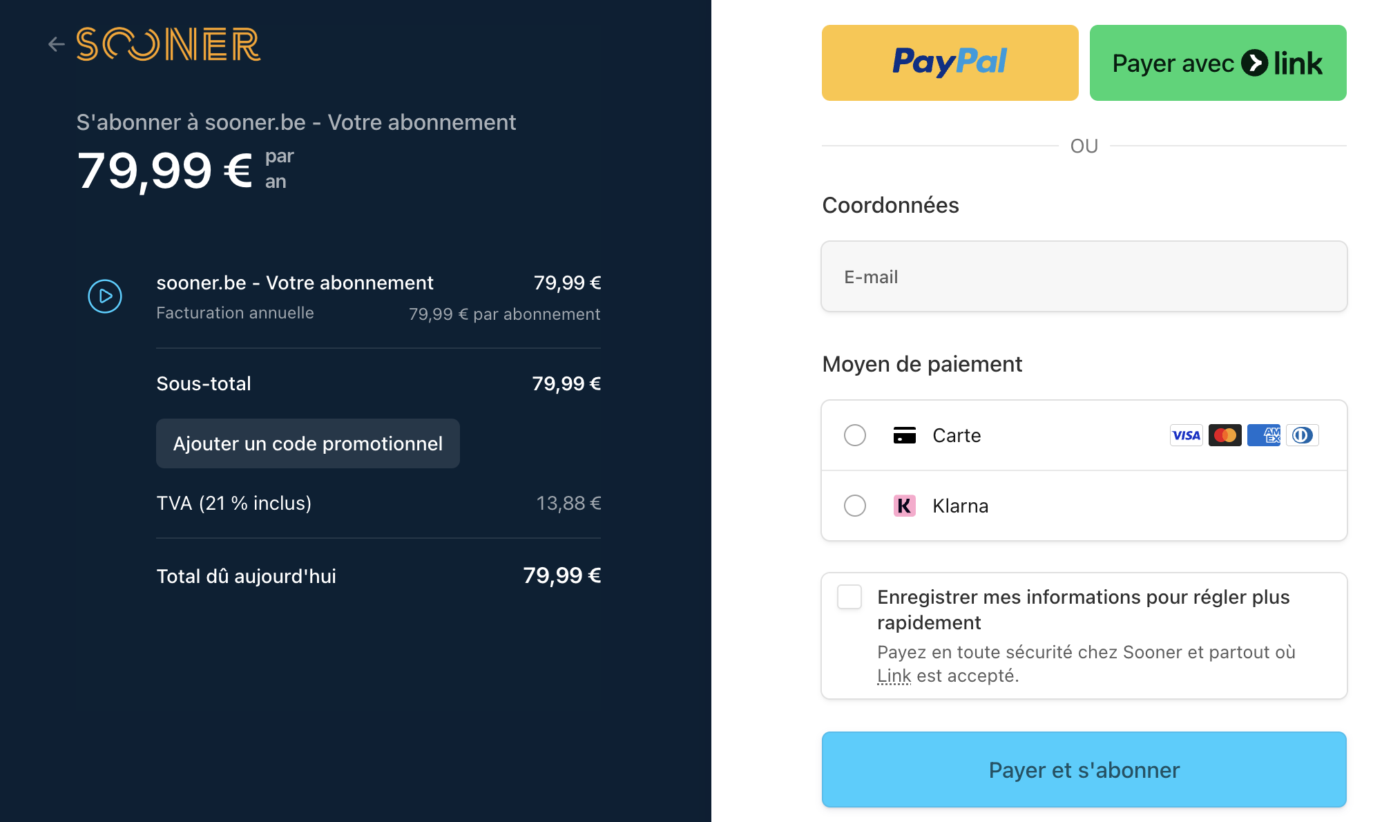 Une fois sur la page de paiement, cliquez sur "Ajouter un code promotionnel" et introduisez votre code promo à l'endroit indiqué, puis cliquez sur "Appliquer" pour le valider.